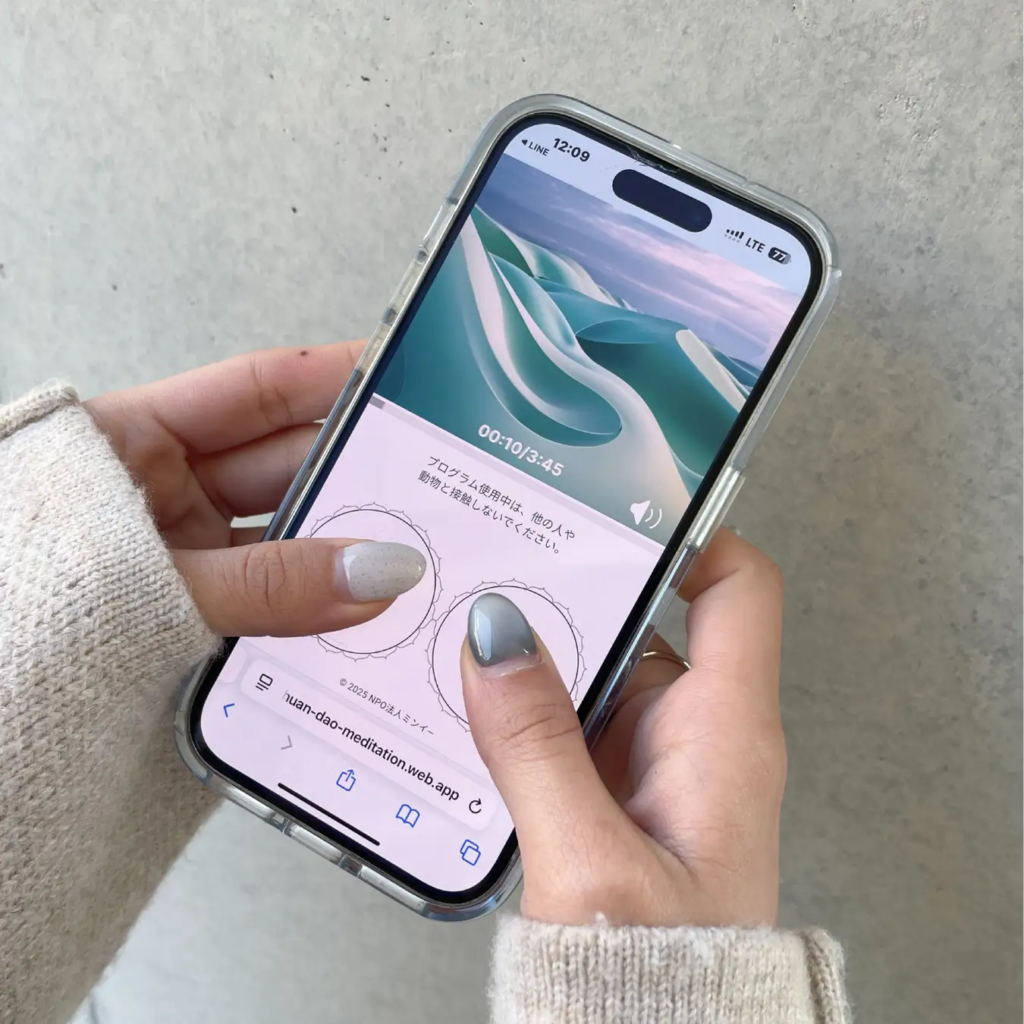 東洋医学における「経絡」や「気血(きけつ)」の概念をプログラムに落とし込み、スマートフォンの画面上に表示される特殊なグラフィックスに指を触れることで、花粉などによる鼻・目・喉の不快感にアプローチするという仕組みだ。1セッションの所要時間はわずか3分45秒。完全無料で提供されており、LINEアカウントを通じて利用できる。