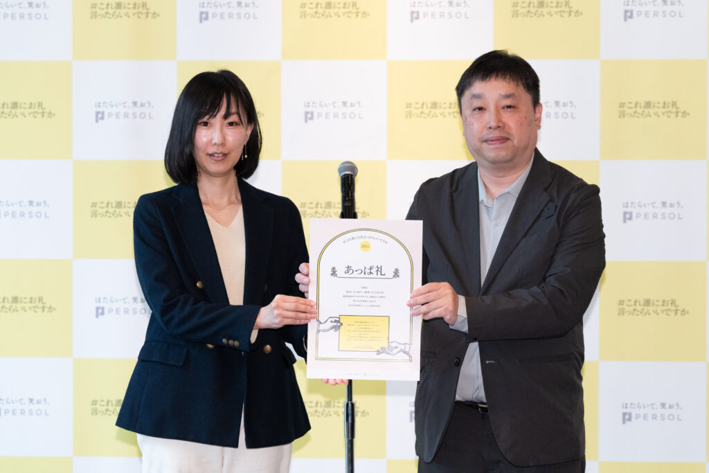 今年は、全国から集まった4,000件以上の中から選ばれた”名もなき名仕事”へのお礼を展示。新たに「あっぱ礼」「ファインプ礼」「おつか礼」の3つの賞が創設され、SNS上で多くの共感を呼んだ仕事に対する感謝が、贈呈式という形で当事者へと届けられた。